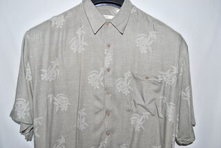 Campia Men's Designer Casual Shirt, 2XL, Silver Bamboo Flower Design, Short Sleeve, Front Button Pocket, 100% Rayon, new without tags.