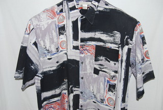 Expressions Men's Designer Casual Shirt, 2XL, Black Multi-Colored, Short Sleeves, Front Button Pocket, Short Sleeve, 100% Cotton, new without tags.