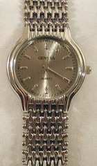 This striking Geneva Men's two-tone quartz precision watch with a alluring gold face.