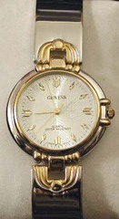 Men's Geneva Designer Two-Tone Quartz Watch with White Face, bold bezel and bracelet style band.