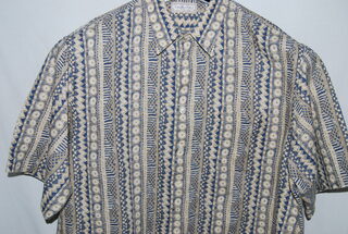 Murano Men's Designer Casual Shirt, 2XL, Blue with Black and Silver Design, Short Sleeve, 100% Polished Cotton, new without tags.