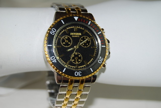 Men's Rosra Designer Silver Tone Quartz Watch with White Face and Black Bezel.