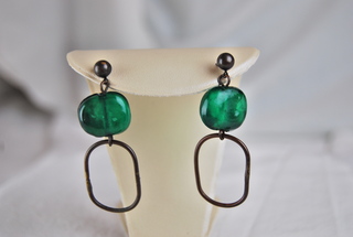 Ladies Designer Geometric Metal with Green Beads Pierced Earrings.