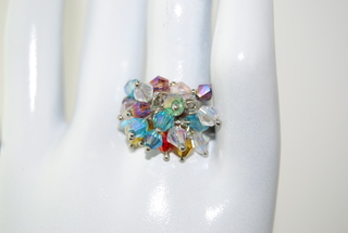 Ladies Designer Silver with Multicolored Crystals Bangle Ring. Adjustable.