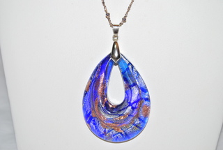 Murano Glass Pendant, Blue, Silver and Gold Metallic with 18" Chain.