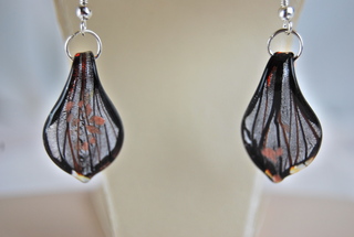 Ladies Murano Hand Blown Glass Black, Silver Metallic Design Pierced Earrings.