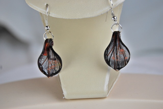 Ladies Murano Hand-Blown Glass Black, Amber & Silver Tear Drop Design Pierced Earrings.