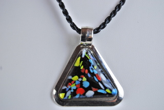 Ladies Murano Hand-Blown Glass in Triangle Shape with Black Multicolor Pendant Necklace on 18" Braided Rope Cord.