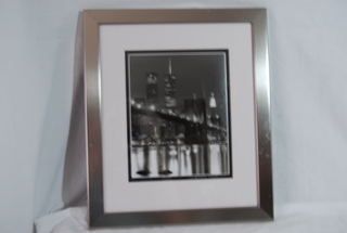 Beautiful Stainess Steel Frame with Black & White Photo of New York Skyline & Brooklyn Bridge. 36" Tall & 30" Wide.