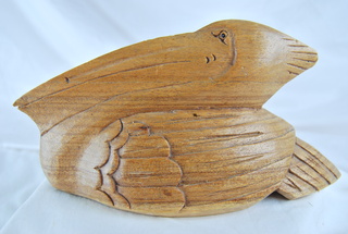 Hand Carved Wooden Pelican Decorative Sculpture.