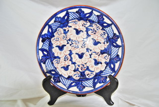 Portuguese Handmade Plate. Signed by the Artist "Olaria Beatriz Cartave, S.P.Corval" Blue & White on Clay. 8.5" Diameter. Stand not Included.
