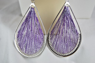 Ladies Designer Purple Metallic Thread on Silver Frame Pierced Earrings. 1 1/2" x 3".