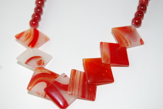 Ladies Designer 18 1/2" Natural "Red Carneline Agate" Gemstone Square & Round Bead Design Necklace.