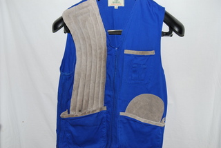 Redhead Hunting Vest, Royal Blue with Gray Suede Padded Shoulder and Pockets, rear game pouch, Size: Medium, new without tags.