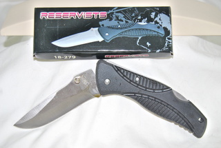 Frost Cutlery - Reservists Knife, # 18- 279, Black Custon Grip, Sculptured Blade. 7.5" Open.
