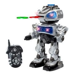 RoboKid Programmable Disc Shooting RC Robot Product Details. This awesome robot can walk forward, backward, and turn left or right. Shoot foam discs out of RoboKid's mouth at the push of a button from your controller. There is also a dance mode with sound effects and music. Features: Programmable Up To 12 Actions In A Row Foam Disc Firing Capability Full Function Control Dance Mode LED Lights Sound Effects Includes: Remote Control Battery Requirements: Transmitter: 6 AA Alkaline Batteries (Not Included.)