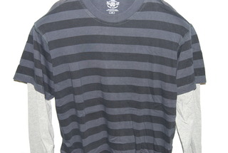 Route 66 Mens "2 in 1" Baseball Shirt, Gray and Black Striped T-Shirt with Silver Long Sleeves, Short and Long Sleeve Shirt, Size: Large, 100% Cotton, new without tags. SRP:$ 35.00