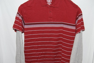 Route 66 Men's "2 in 1" Polo Shirt, Medium, Burgundy with Burgundy, Blue and White Stripes Short Sleeves and Silver Long Sleeves, 100% Heavy-Duty Cotton, new with tag. SRP:$ 35.00