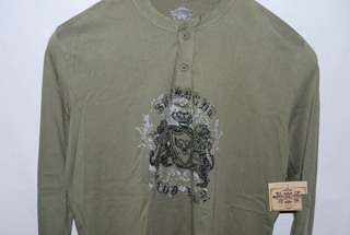Route 66 Men's "Long Sleeve" Shirt, Large, Two Tone Blue, Army Green, Button Front, Coat of Arms, Dragon, Crown, Honor, 100% Cotton, new with tag. SRP:$ 45.00