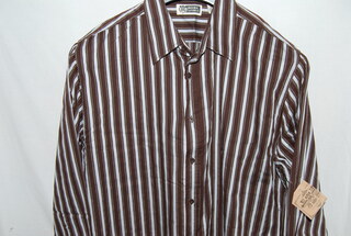 Route 66 Men's Shirt, Medium, Long Sleeve, Brown, Silver & White Vertical Stripe Design with Collar & Front Pocket, 100% Cotton, new with tags.