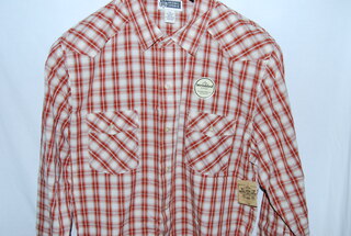 Route 66 Western Style Men's Shirt, Size: Large. White, Gray, Brown & Burgundy Striped Design, Long Sleeve, Single Front Pocket, 100% Cotton, new with tags.