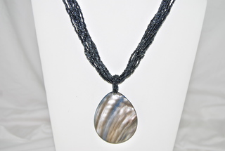 Ladies Gray Natural Sea Shell Pendant with Gray Beaded Necklace, Adjustable Lobster Clasp.