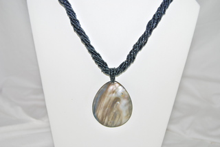 Ladies Designer Gray Natural Sea Shell Pendant with Gray Beads Necklace, Adjustible Lobster Clasp, Twist Beads for Different Designs.