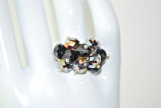 Ladies Designer Silver & Black Crystal Bangle Ring. Adjustable.