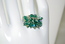 Ladies Designer Silver with Blue & Green Crystal Bangle Ring. Adjustable.