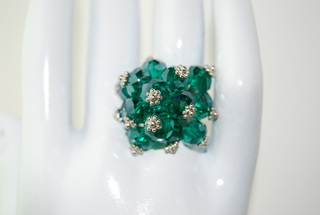 Ladies Designer Silver with Emerald Green Crystal Bangle Ring. Adjustable.