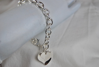 Ladies Designer 8" Silver Stainless Link with 2 Hearts Design Bracelet.