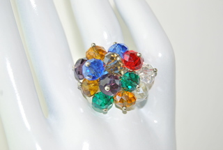 Ladies Designer Silver with Multicolored Crystal Bangle Ring. Adjustable.