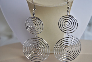 Ladies Designer Pierced Earrings: Silver Fashion Swirl Disk Design. 1 1/4"W x 2 1/2"L.
