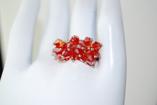 Ladies Designer Silver with Red Crystal Bangle Ring. Adjustable.