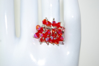 Ladies Designer Silver with Red Crystal Bangle Ring. Adjustable.