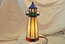 Stained Glass Lighthouse Lamp with Blue Roof. 12" H. 110V.