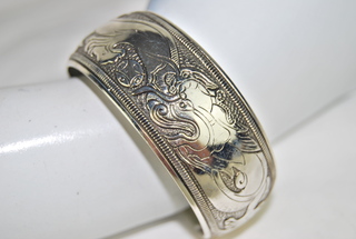 Ladies Silver Stainless Flaming Sun & Dragon Design Adjustable Cuff Bracelet.