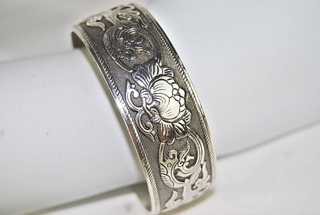 Ladies Silver Stainless Etched Scroll Design Adjustable Cuff Bracelet.