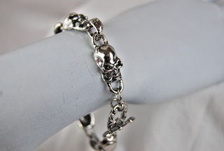 Men's Designer 8 1/2' Silver Stainless Skull Design Bracelet.