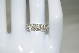 Ladies Designer Swarovski Crystal Double Stone Silver Stretch Ring.