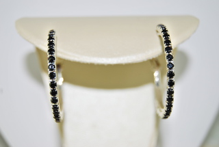 Ladies Designer 1 1/2" Swarovski Crystal Silver Pierced Earrings with Black Onyx Design.