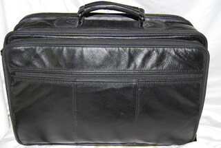 TEK Leather Attache Case, Black Leather with Multi-Compartments & Shoulder Strap. 18" L x 15" H.