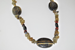 Ladies Designer Polished "Tiger Eye & Agate" Gemstone Necklace, Adjustable 17.5" to 20.3".