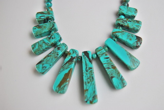 Ladies Designer 16" Turquoise Fingered & Beads Necklace.