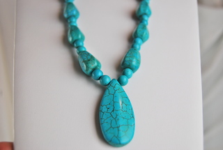 Ladies Designer 20" Turquoise Tear Drop & Beaded Design Necklace.