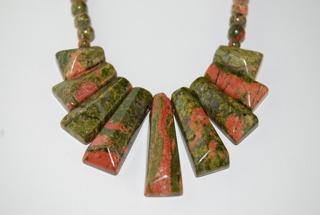 Ladies Designer 18" Natural "Unakite" Faceted Gemstone Round Bead Design Necklace.