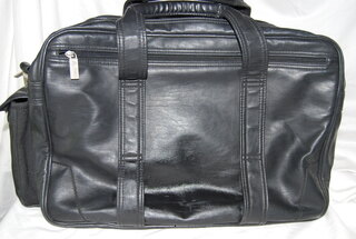 US Luggage Leather Attache Case, Black Leather with Multi-Compartments & Shoulder Strap. 20" L x 18" H.