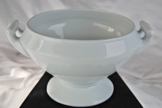 White English Porcelain Serving Bowl with Handles